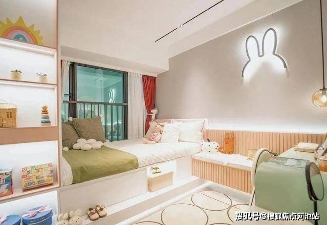 而拾悦城楠园敢于突破常规,既保证了主卧的阔绰空间,也让次卧有足够的尺度满足两个孩子休息、学习、玩乐等需求。