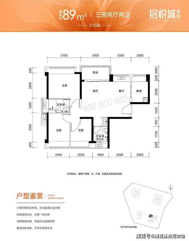 100㎡的3房2厅2卫,折后总价355万,单价3.55万/㎡。