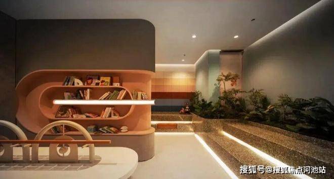 还有架空层设置上,专门布置了儿童趣玩空间、阳光学堂和阅读区,满足孩子和家长在社区室内活动的需要。