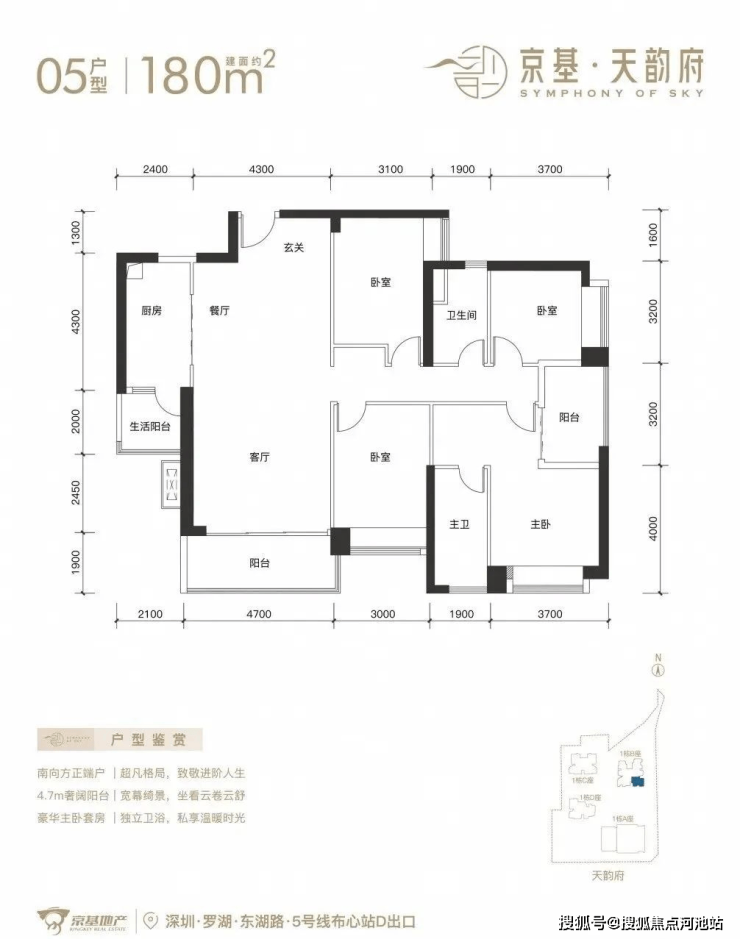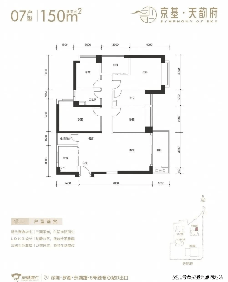 深圳【京基天韵府】已全面开盘,看房需来电进行预约,目前推出1栋B座,244套房源。面积有70-85㎡的2房1卫,105㎡的3房2卫,120-150-180㎡的4房2卫户型,项目位于罗湖区东湖街道,西临东晓路,北临东湖路,东临丹平快速路,距离5号线“布心站”300米,7号线“太安站”700米范围内,属于“双地铁”物业。