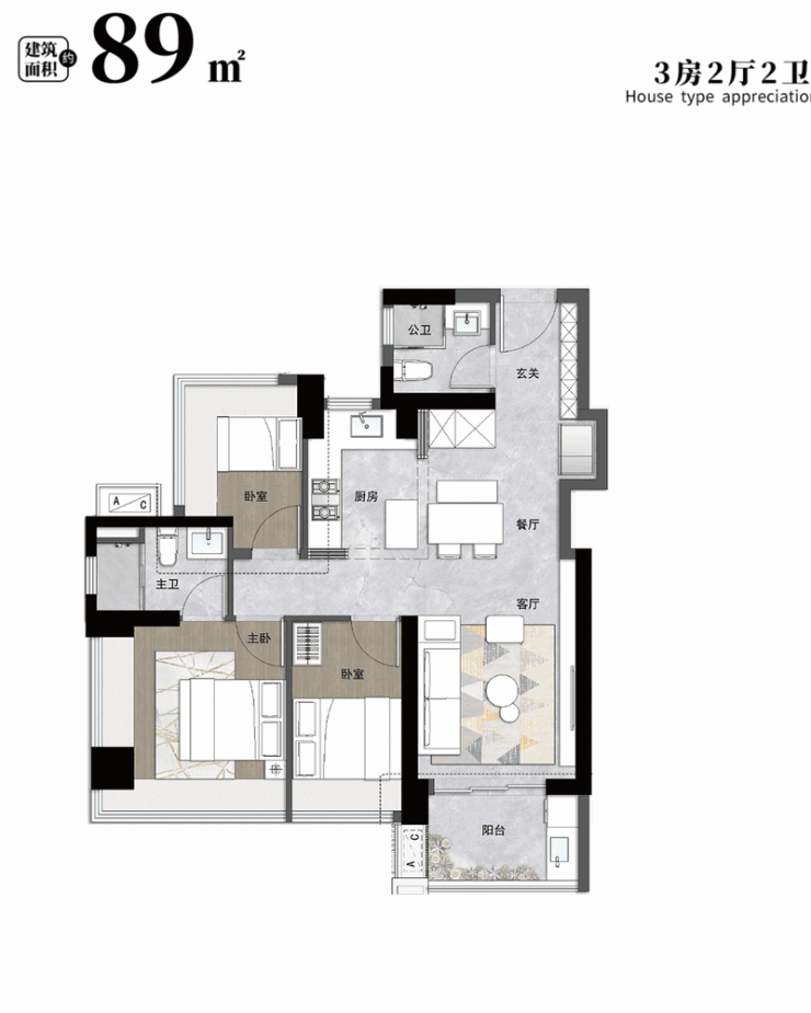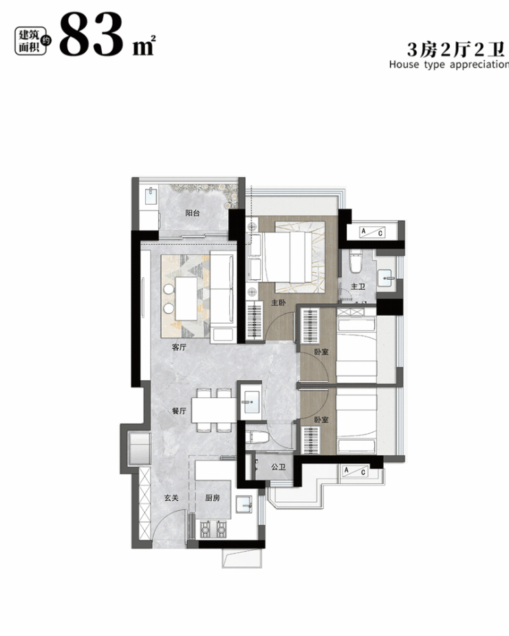 有建面约83㎡的3房2卫、89㎡的大3房2卫,也有建面约98㎡、114㎡的4房2卫产品,能满足一家三口、乃至三代人的不同居住需求。