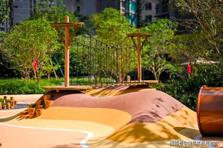 侧重娱乐、活动与交友功能,设置了滑滑梯、平衡桥、梅花桩、跳远、跳格子等儿童设施,让小孩可以快乐成长、轻松交友。