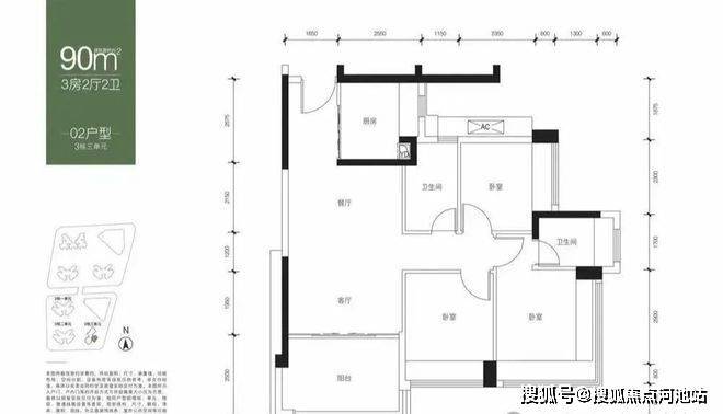 【面积】:约82-89㎡3房2卫