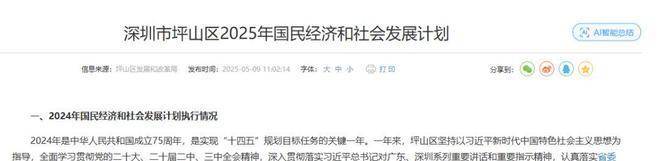 想看数据看这个《深圳市坪山区 2025 年国民经济和社会发展计划》!