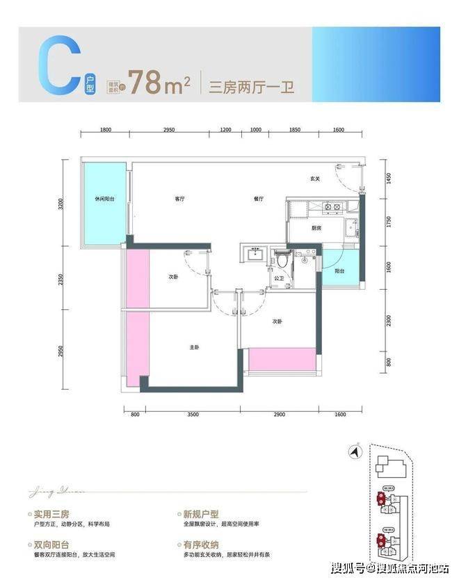 •78㎡三房:总价164-198万,单价2.09-2.54万/㎡