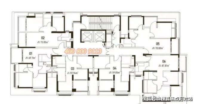 项目7-22层为住宅产品,可售商品房面积约59-89㎡ 2-3房,总房源共96套,2梯6户设计。