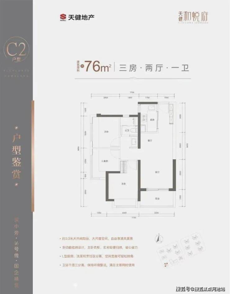 最新动态:坪山燕子湖片区,天健和悦府已开放展厅,即将入市销售,项目总规划建设2833套住宅,其中商品房住宅1740户,自持保障性住宅806户,毛坯限价3.75万/平!本次预推688套住宅房源!面积75-76平的3房1卫,89-99平的3房2卫户型,带精装交付。