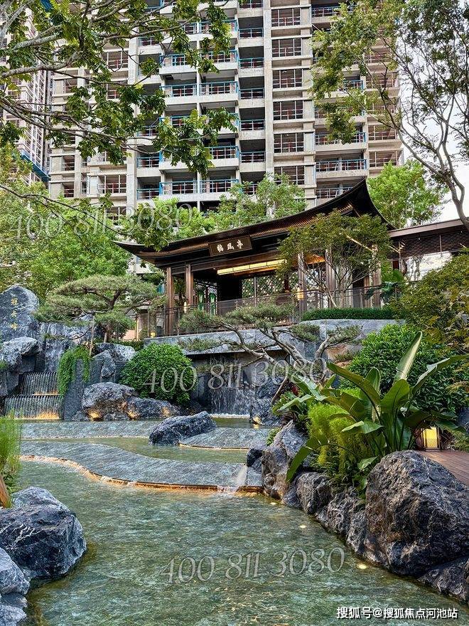 项目以岭南名园清晖园为灵感(目前项目仅开放东区园林实景展示,西区园林实景敬请期待),打造“园中有园”的沉浸式园林,规划“山水六境”。从“青染门庭”主入口,到以琉璃桥“小飞虹”和“折桂轩”为核心的中央水院,再到全龄活动空间,步移景异,让归家成为一场放松身心的微旅行。