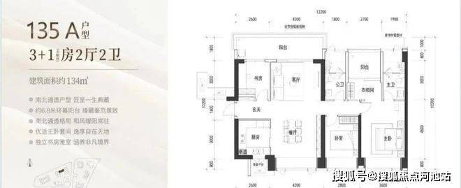 135㎡:横厅格局,南北双阳台设计,9.8㎡南向主阳台,三个房间面积分别达到9/11/15㎡,主卧带衣帽间和卫生间,舒适度非常好。