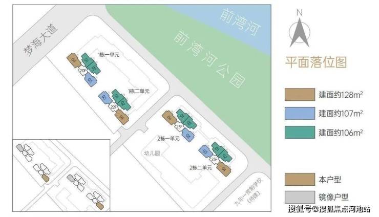 前海瑧玺主力户型是106-104-128㎡3-4房,都是2梯4户设计,20-23层小高层住宅,所有户型主朝向都是东北向,看前湾公园水廊道景观、部分户型还能看点海景