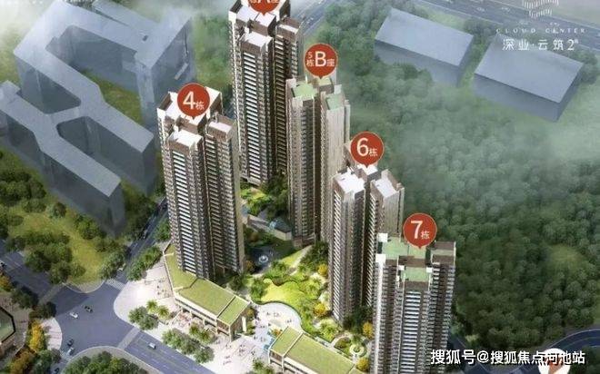 深业云筑2期,由深圳国企深业集团打造,共由5栋总高32-33F高的住宅组成,其中除了6栋总高33F,其它栋数都是32F,总规划795户,全部都是商品房住宅,其中5栋B座,6栋为2梯4户设计,其它栋数为3梯6户设计。