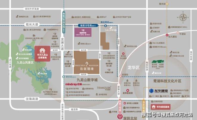 片区最大的看点是华为九龙山总部基地——2021年华为以2.98亿底价拿下约51万㎡产业用地,计划2026年正式入驻"第二总部"。在华为带动下,迈瑞动物医疗、传音控股、海目星激光等龙头企业相继入驻,规划总产值超3500亿元。产业驱动的片区,确定性较强,公共资源配置会持续倾斜。