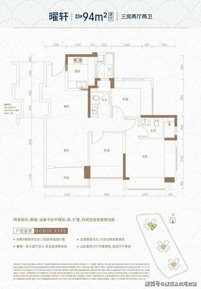 • 94㎡三房两卫:288-307万