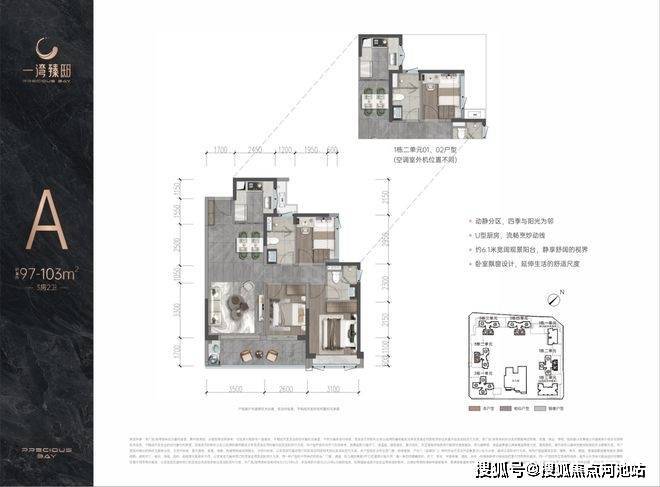 分布位置:分布在3栋二、三、四单元;1栋2单元为相似户型(空调外机位置不同)