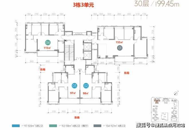 分布在3栋一、三、四单元,相似镜像户型在二单元也有