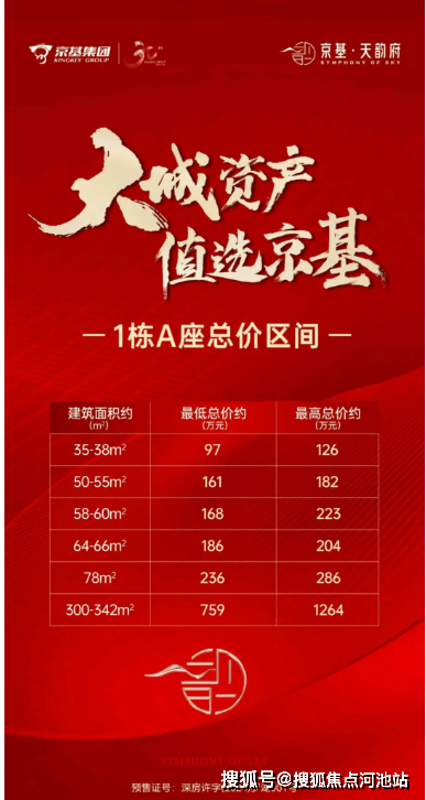 京基璟悦府:2栋住宅77层,1栋办公楼62层,1栋办公楼66层,1所18班幼儿园,约1687套房源,其中商品房有470套。