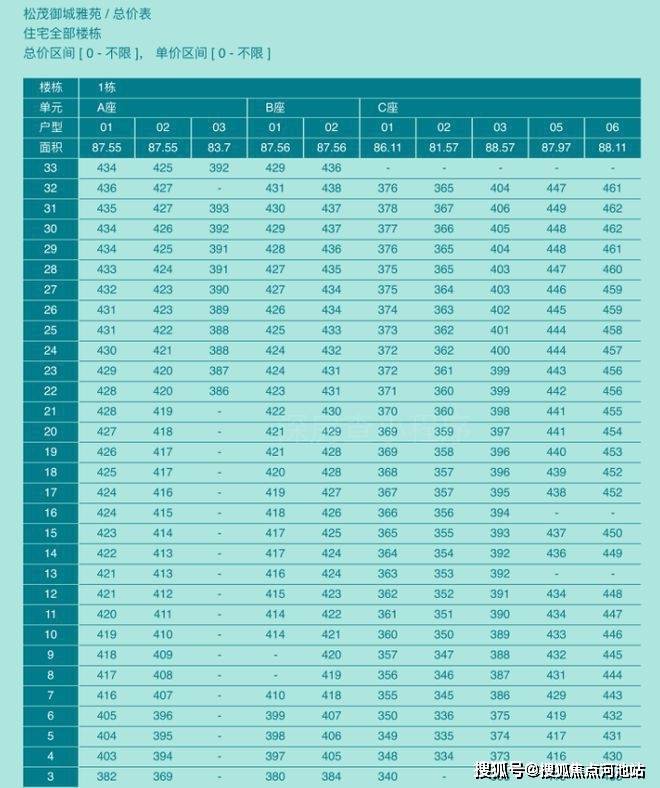 松茂御城住宅户型价格: