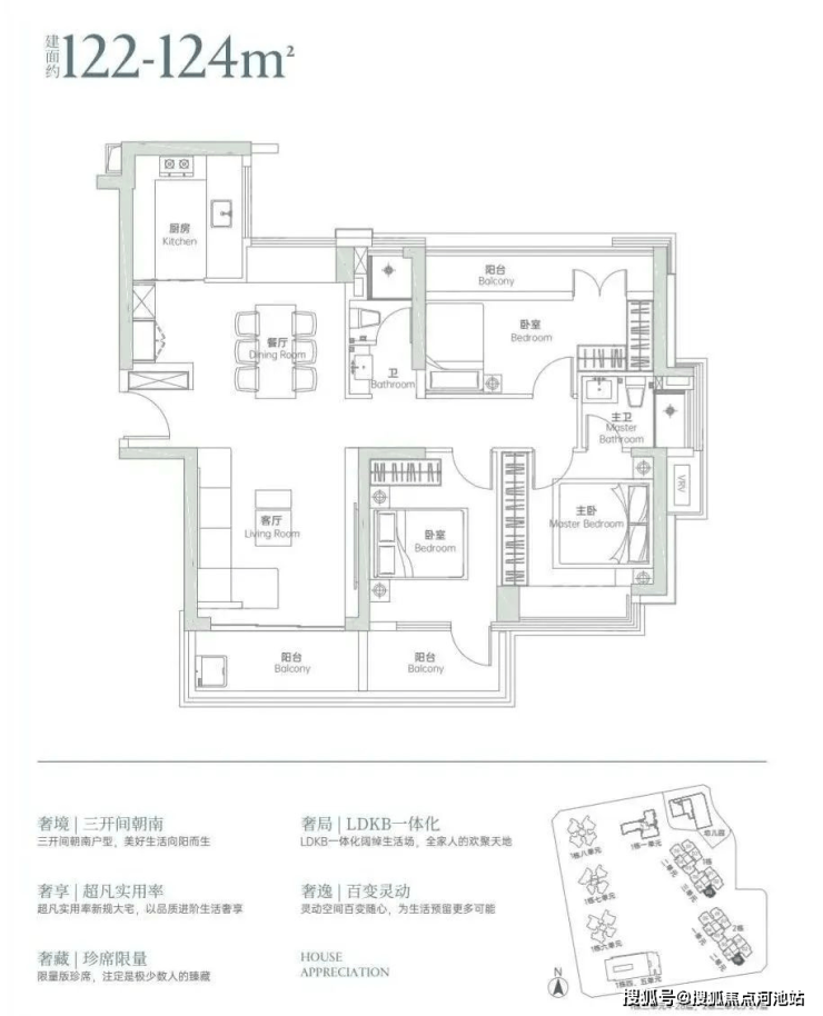 【户型面积】105-124-144-190-220-260-280㎡的3-6房