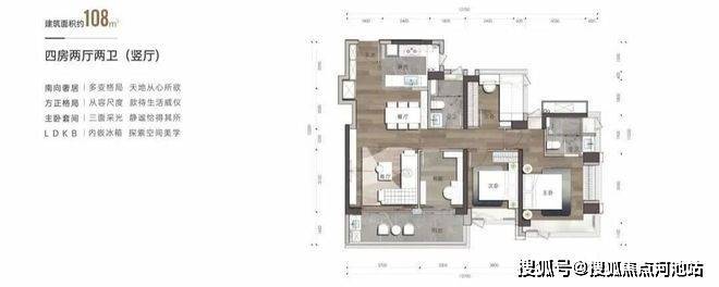 建筑面积约108㎡户型-4房2卫(竖厅)
