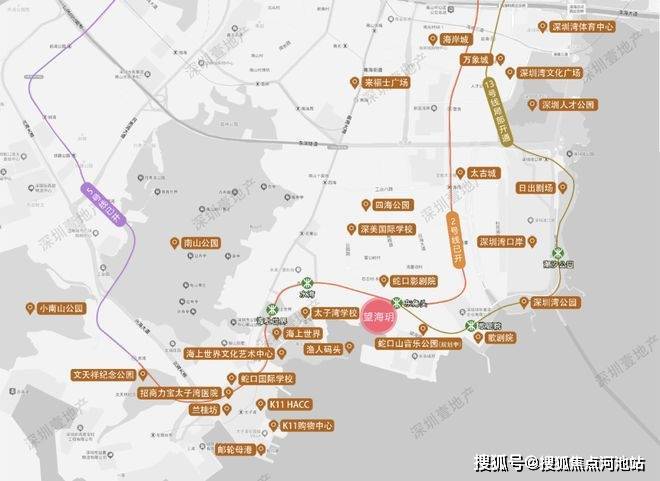 从东到西贯穿了蛇口、深圳湾、华侨城、香蜜湖等深圳知名豪宅区。