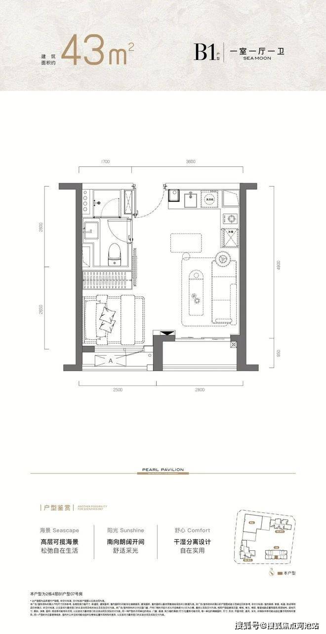 不仅拥有一线海景资源,约36㎡起的户型设计更大幅降低了入驻门槛。