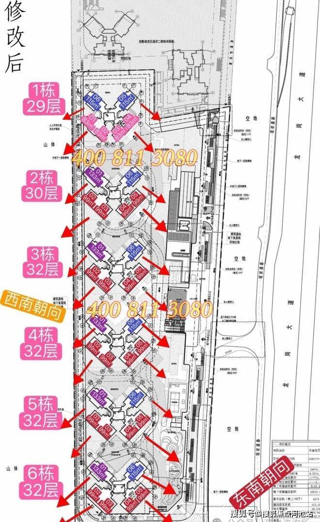 总规划1086户,全部3梯6户设计,户户朝南,地下室有3层,规划1116个车位,车位比1:1.02。