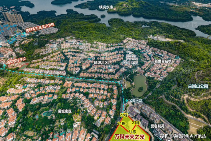 周边配套:万科·未来之光周边有丰富的自然资源:宝安公园、尖岗山公园、国际山公园、铁岗水库,生态资源丰富,加上项目本身是一个低密纯居住社区,容积率仅2.91,后期的居住体验会是“出则繁华,入则宁静”。