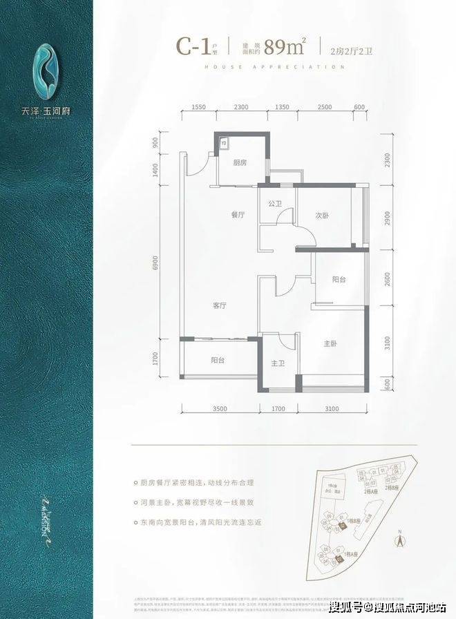 V型塔楼布局,南向阳光户型,约80%高实用率,双阳台,光明罕有绝版户型。建面约80-143㎡河岸美宅,赠送高标准绿建简装,向往的生活在这里触手可及。