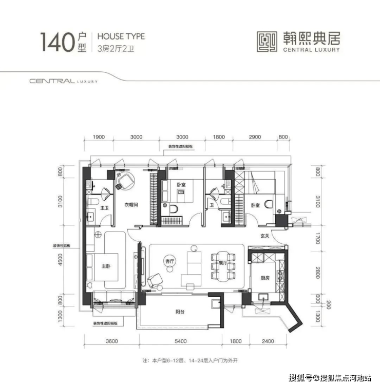 140户型,独门独户,横厅南北通透格局,三面采光、进门入户玄关,客餐厅7.2米开间,LDKB一体化设计,四开间朝南,主卧可以做到约40㎡。