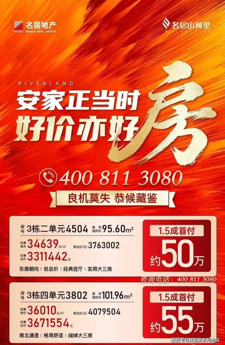 目前名居山河里所剩房源不多,针对剩下的房源还打出了85折优惠。11月1日4单元18到23层开始售卖,其中有95㎡的3房2厅2卫,98㎡的3房2厅2卫,102㎡的3房2厅2卫。还有十几套83折的工抵房!