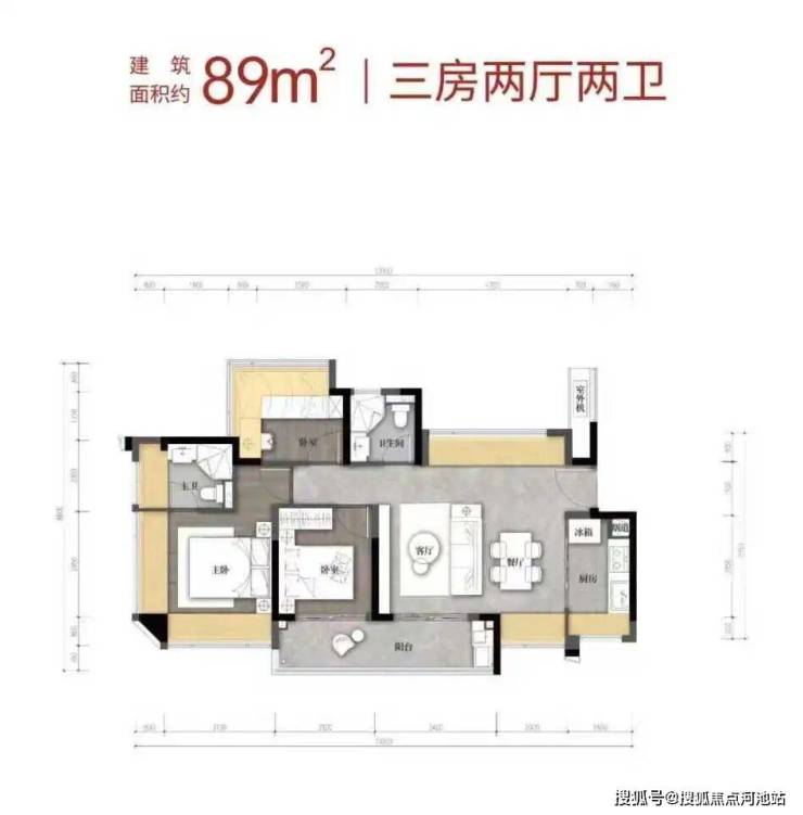 【建筑面积89㎡3房2卫】