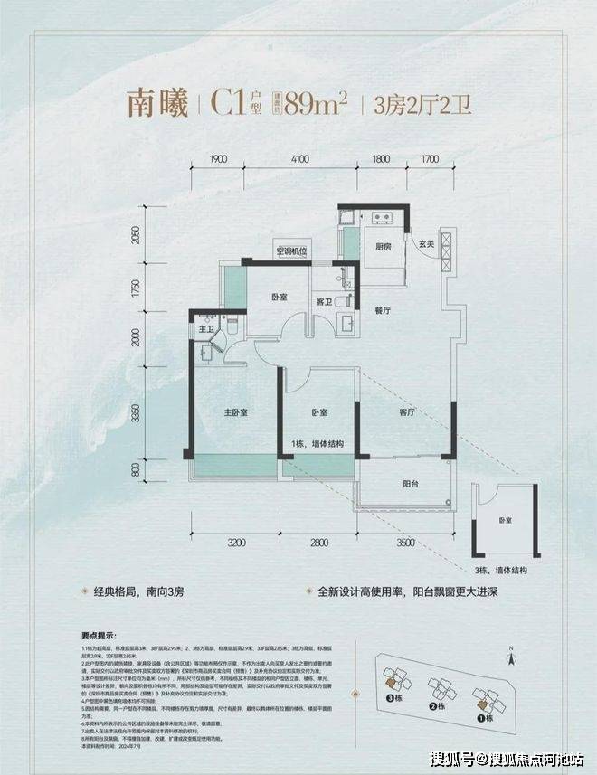 1/2/3栋共375套房源,这次会首推1栋,共165套房源,面积有89㎡的3房2厅2卫,114-141㎡的4房2厅2卫户型。