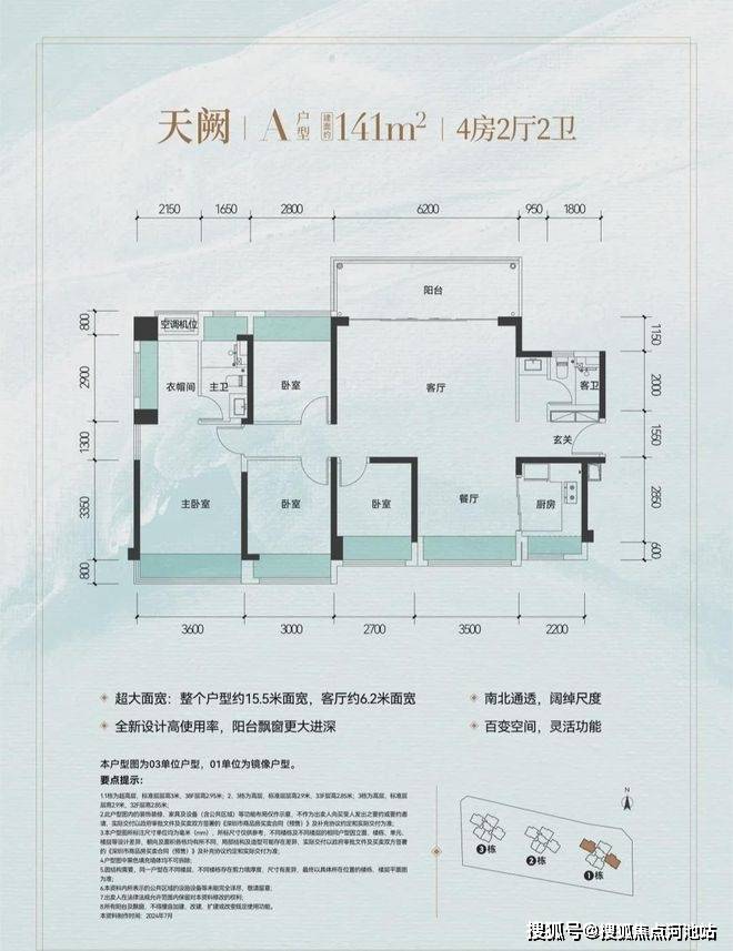 在户型设计上,更可见振业深厚的市场研究及产品打造功力。比如约143㎡大四房户型,整个户型15.6米超大面宽、南北通透,客厅6.2米超大面宽,甚至具备可变“五房”的灵活空间改造潜力。