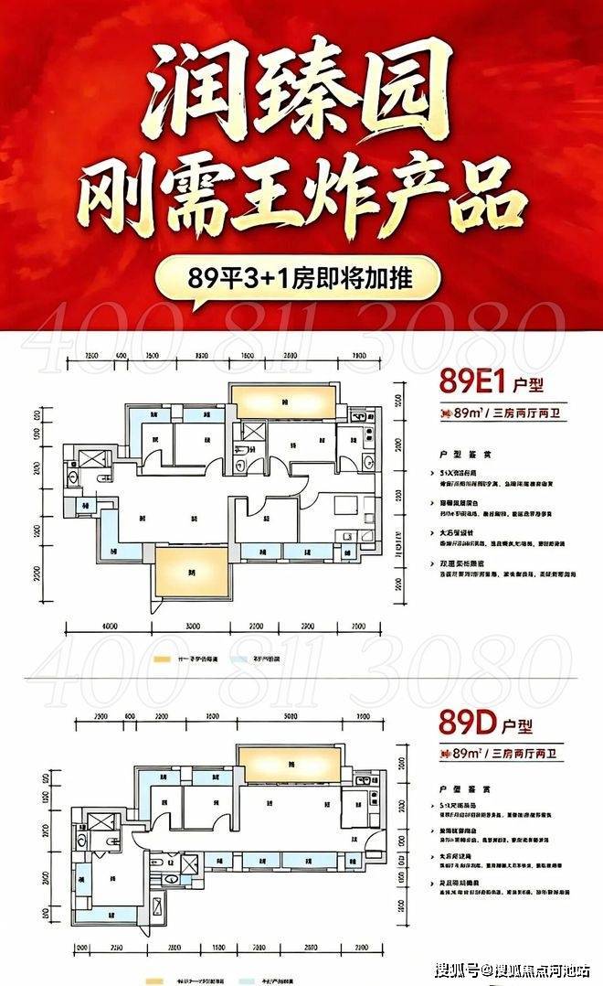最新消息:润宏城2期·润臻园 近期加推6栋建面约89平米3+1房,建面约89平米户型折后总价285万起!