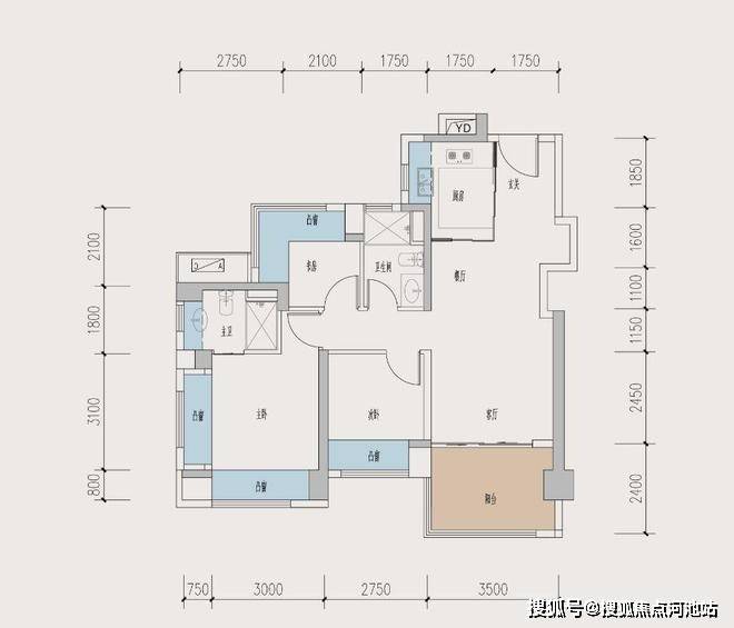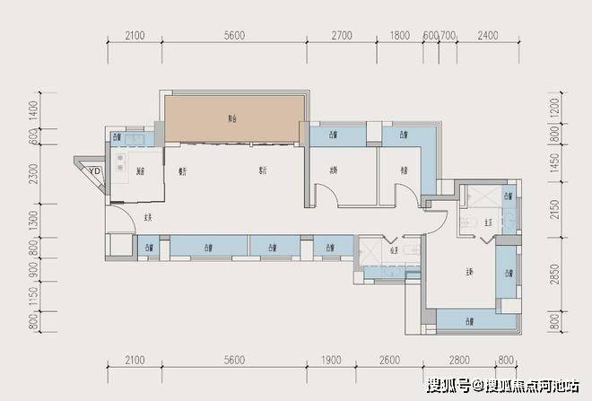 · 双L型采光飘窗,拉宽采光面,空间宽敞实用