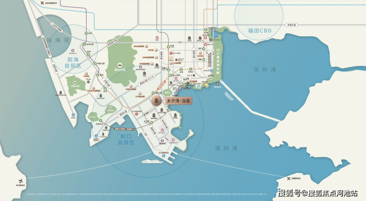 前海蛇口,集“粤港澳大湾区、社会主义示范区、前海蛇口自贸区、一带一路”四大国家级发展战略于一身,处热点板块深圳湾和前海湾重叠处,吸纳双湾优越资源。同时,随着2021年深圳十四五重大规划中蛇口国际海洋城的启动,太子湾前瞻布局战略性新兴邮轮产业,占据先天优势成为城市新一轮发展的起点,将推动区域不断向前发展。