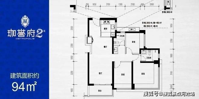 建面约75-76㎡三房一卫;约85-86-87-94-95-96㎡三房两卫,约105-120㎡四房两卫;