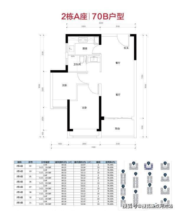 70A为“双龙抱珠”户型,采光面大,卧室、客厅空间舒适性较好;
