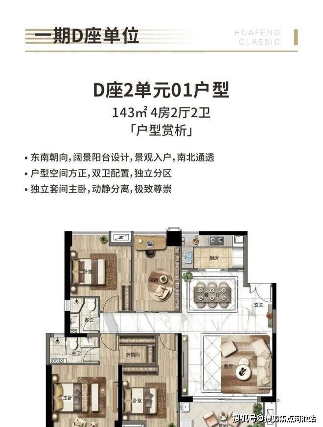 143㎡ 4房户型:单价:5.3万起、总价770万起