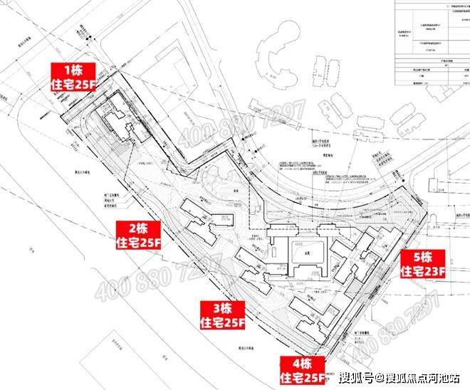 『中海·云颂玖章花园』整个小区内部由5座23-25层的住宅楼组成,有2梯4户、2梯5户两种梯户配置,每层楼标准层高都是3米。