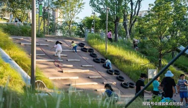 成长探险乐园:游乐区与园林结合,打造科普花园,设计攀爬树屋、滑梯、秋千、趣味沙坑、家长看护区、婴儿车停放区等