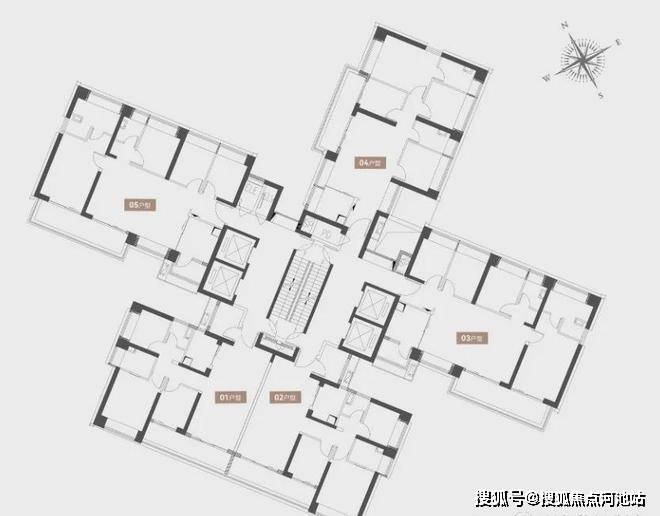 01-04户型100平3房2,05-06户型120平4房2卫,4梯6户,层高3.1米。