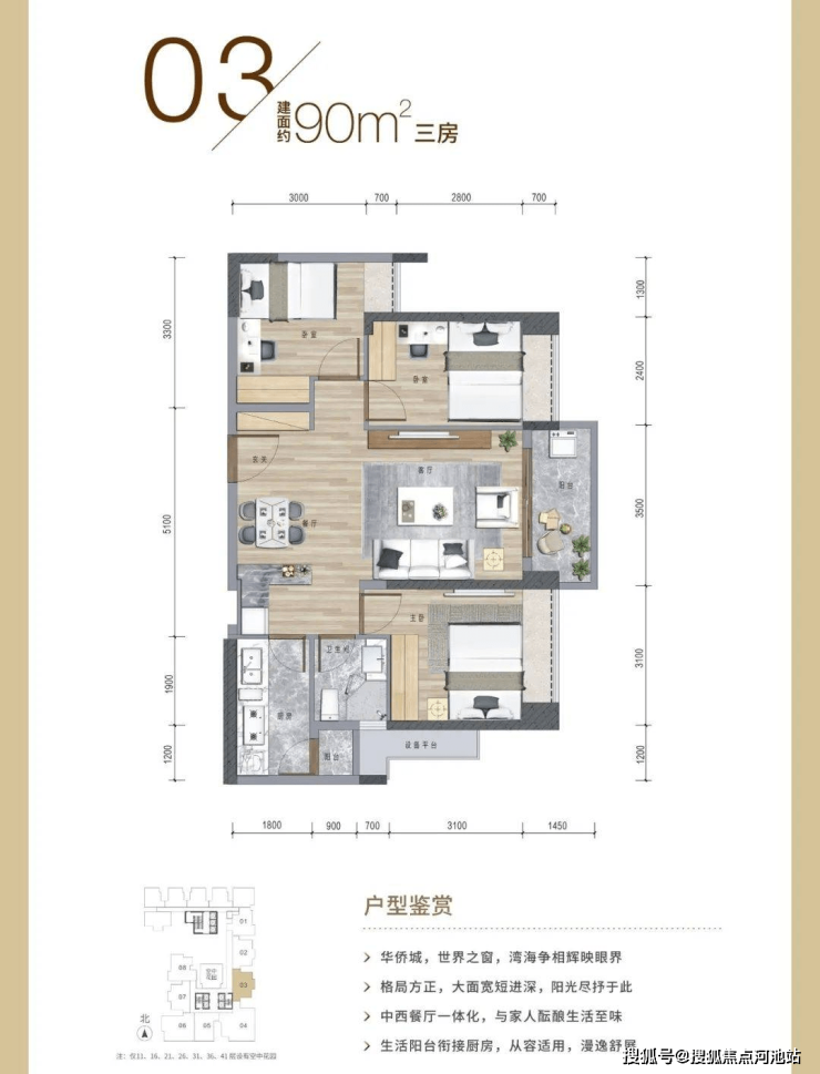 02/03约90㎡ 3房2厅1卫 总价:约990万 东向