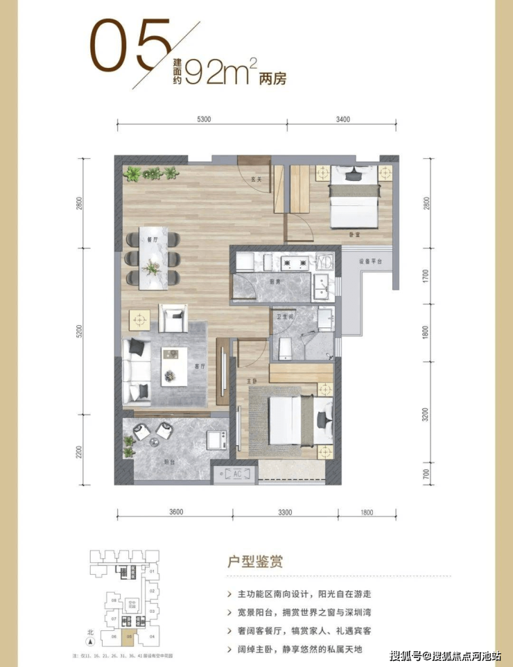 05约92㎡ 2房2厅1卫,总价:约1000万 南向