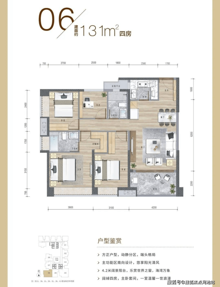 06约131㎡ 4房2厅2卫 总价:约1441万 西向