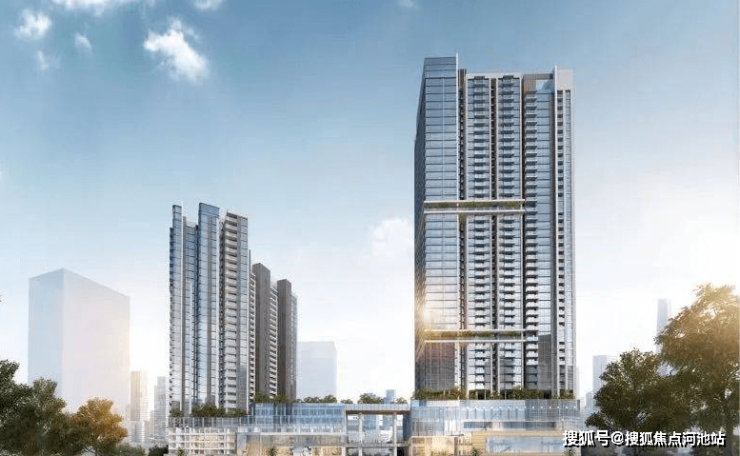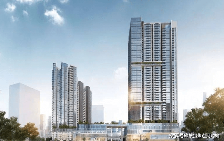 选用住宅楼迪拜“公主塔”等豪宅标配—玻铝立面,以流光巨幕献映都会盛境,钻光百年绽放。