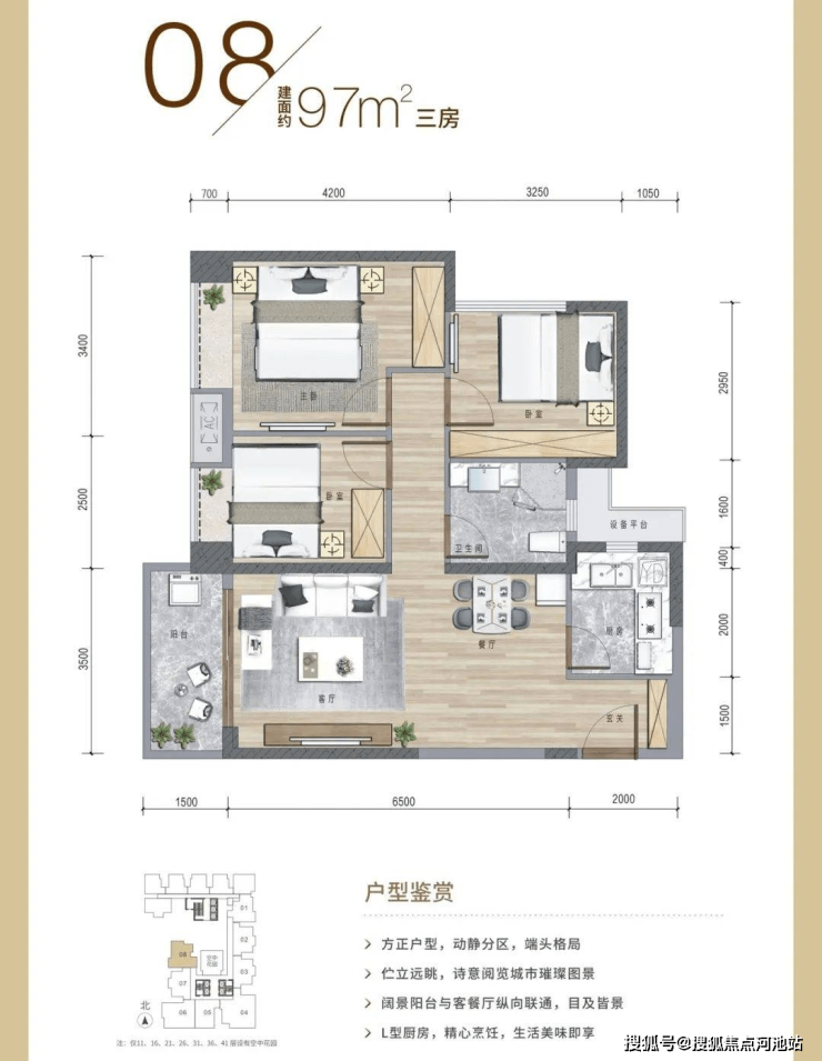 08约97㎡ 3房2厅1卫 总价:约1068万 西向