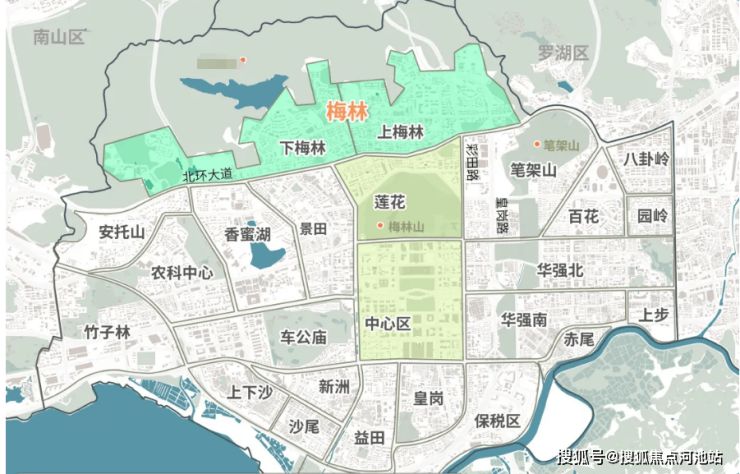 超460公顷“三山一水三公园”环绕,北面是梅林山、笔架山、梅林水库,南面几百米就是知名的莲花山公园,周边还有多个小型社区公园,闲暇时间遛娃遛弯的好去处。
