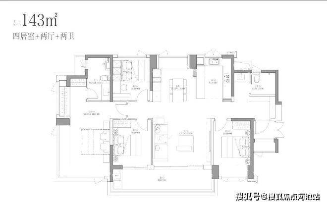 项目产品户型图可以看出,全部都是带大阳台的通透产品、主卧带270°大飘窗。