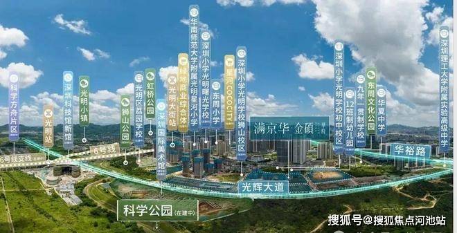 满京华金硕,前身为光明狮山利益统筹项目,由满京华集团全盘操刀,涵盖有10块用地,总占地面积约10.9万㎡,总建筑面积约32.38万㎡,其中住宅用地有7块,返还用地1块,公共绿化用地2块,住宅用地有:满京华金硕和府,满京华金硕瑞府,满京华金硕臻府,满京华金硕华府,满京华金硕悦府,满京华金硕嘉府。